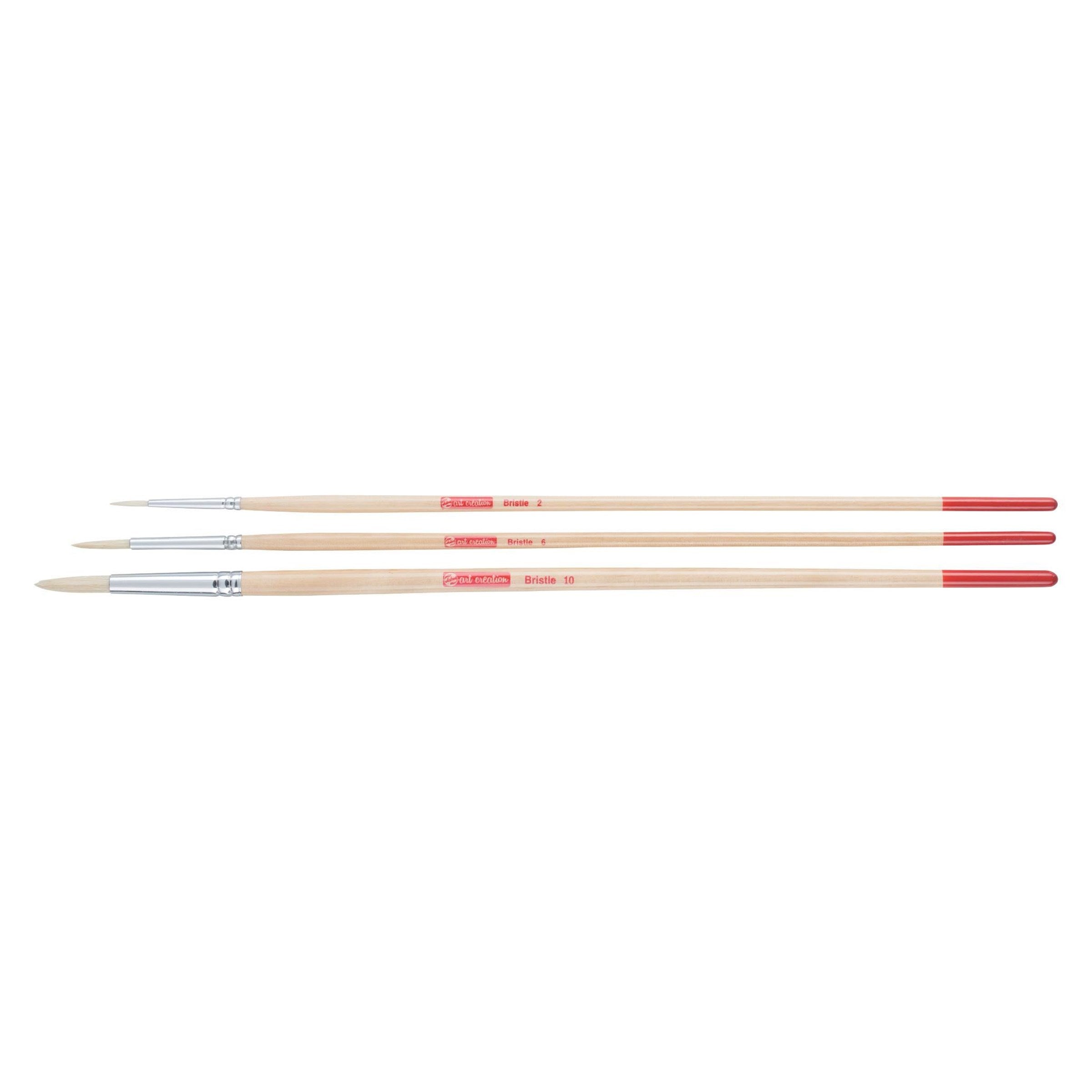 ეს 3 ღორის ჯაგრის ფუნჯის ნაკრები ზეთისა და აკრილის სარებავებისთვისა და გუაშისთვისაა. ნაკრები შეიცავს შემდეგ ტიპებსა და ზომებს: 3 მრგვალი ფუნჯი 2, 6 და 10 ზომებში.